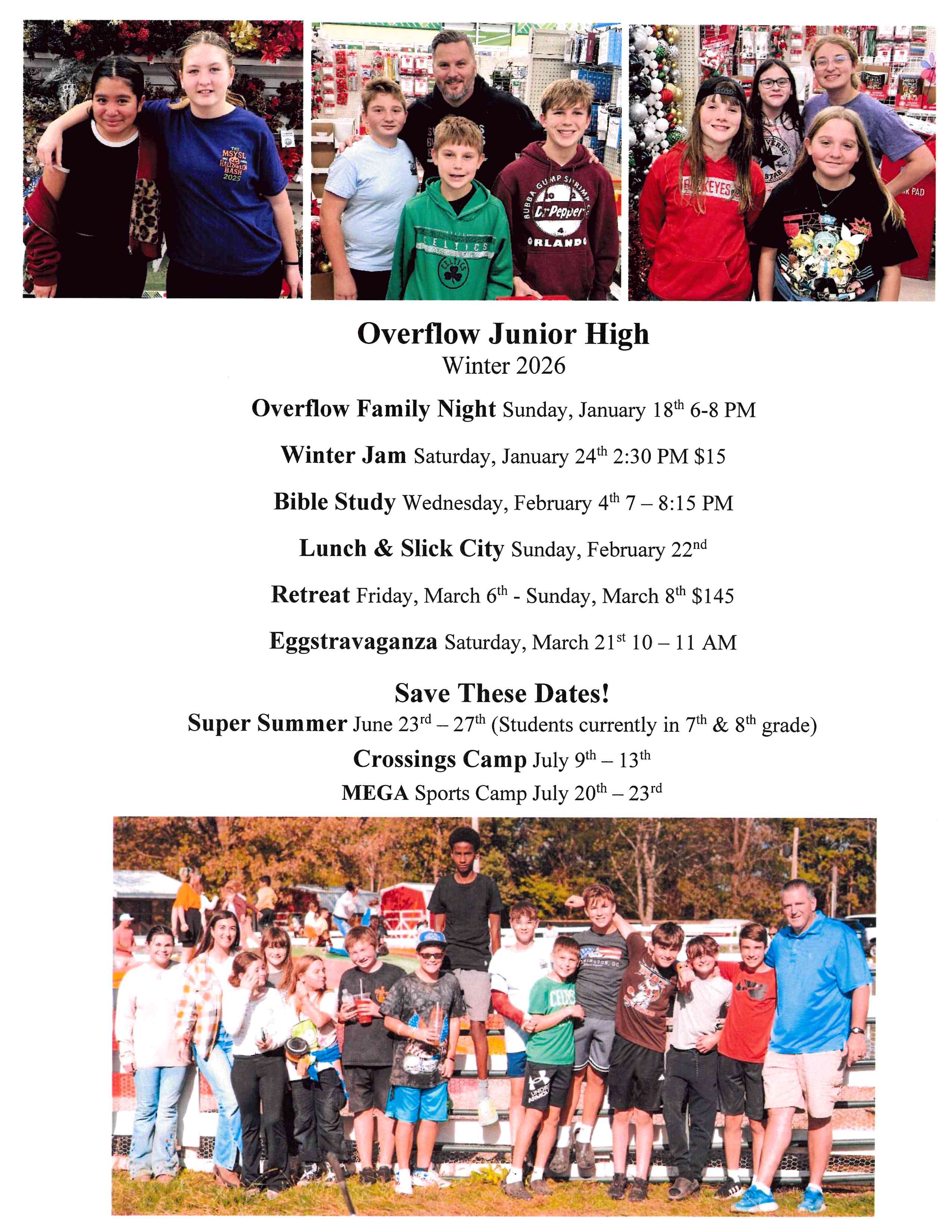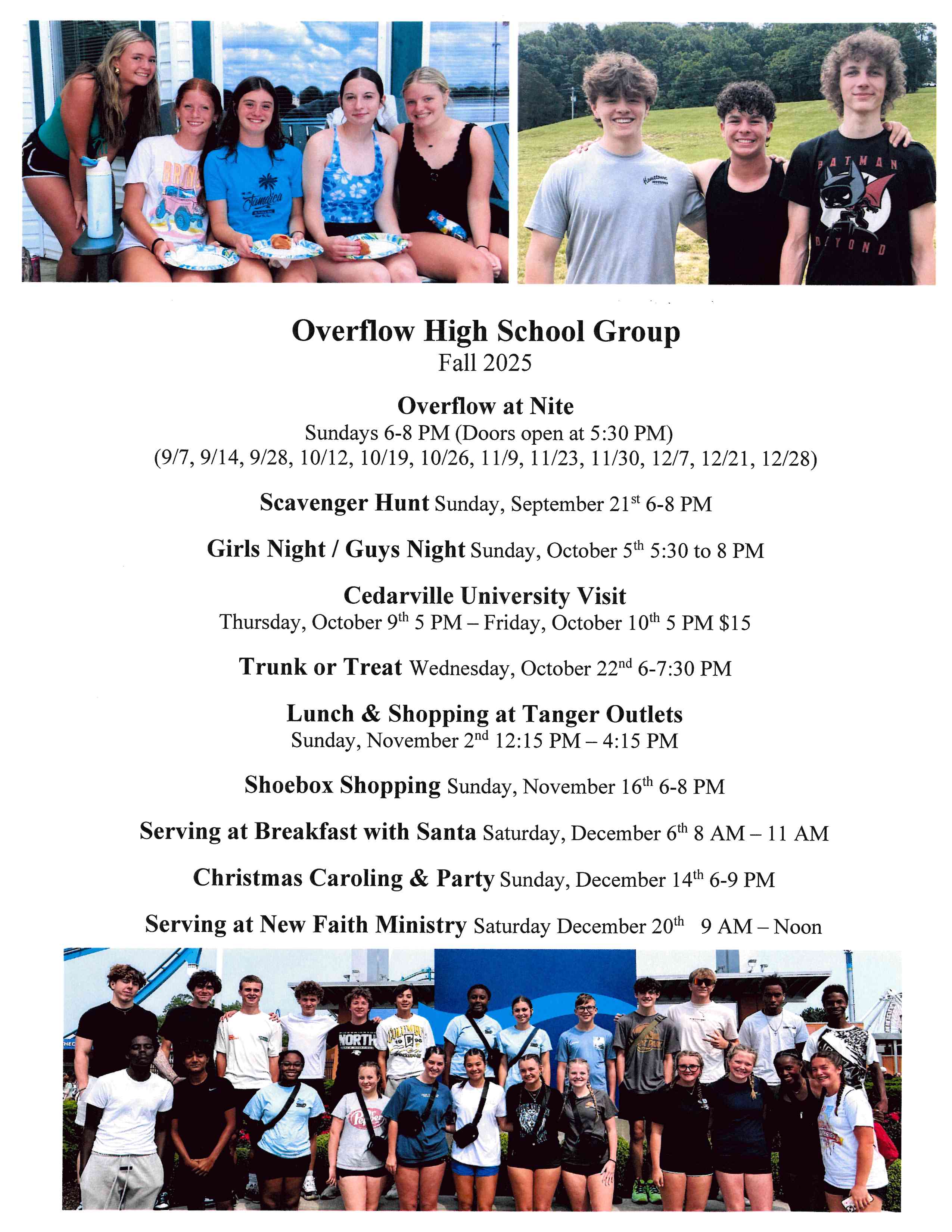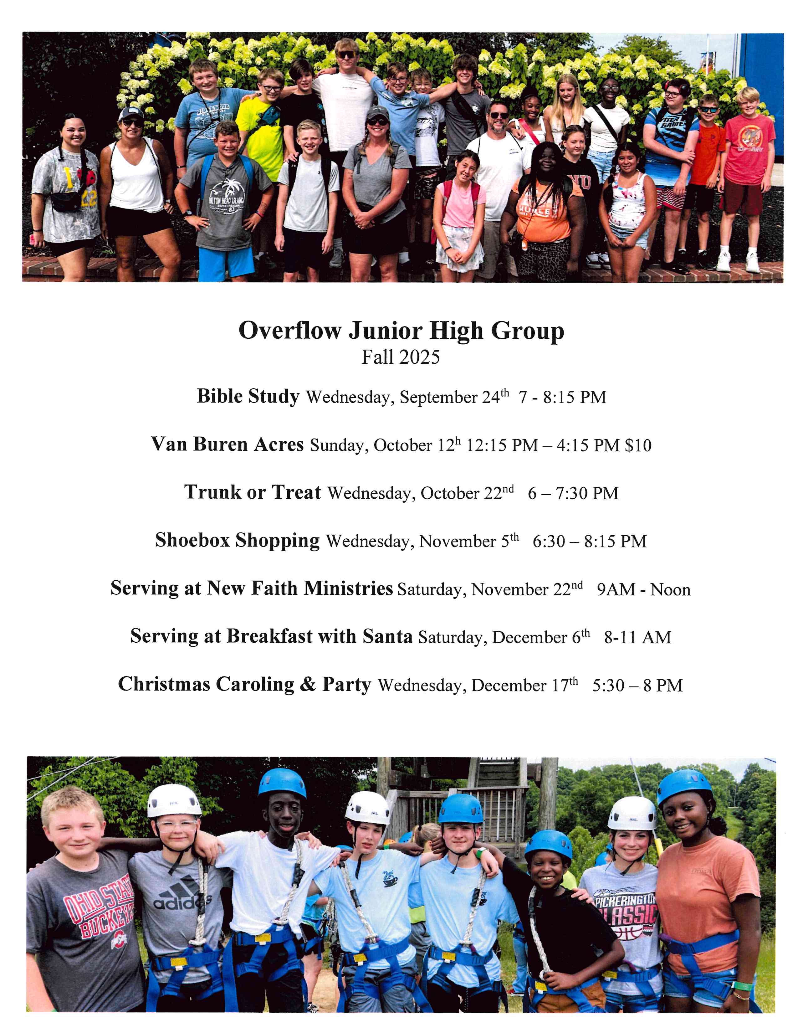 Overflow Youth is for Jr High and High School students. From fun events like amusement parks, horseback riding, and scavenger hunts to events to grow deeper in their faith like Sunday morning services, small groups and mission trips, students will find many opportunities and ways to connect with God, other students and youth leaders. Students hold key roles in serving as well. Serving opportunities include Youth Worship Team, Trunk or Treat, Stowe Mission of Central Ohio, and more.